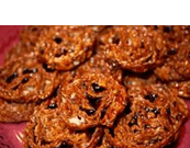 Thin spirals of fried dough shaped like roses, then: