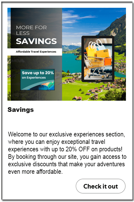 Enjoy our curated selection of special travel products with discounts, while you wait for your next flight!