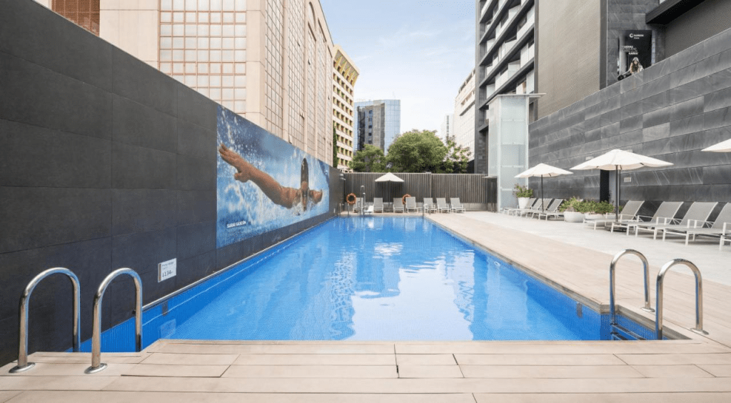 Come and discover the ILUNION Atrium hotel, a modern hotel in Madrid with a swimming pool designed to rest on your weekend getaways to the capital or after a long working day. Our modern 4-star hotel in Madrid stands out for its incredible contemporary design: A dimensioned building with high ceilings and a robust concrete structure, combining these urban aesthetic materials with steel and glass panels.