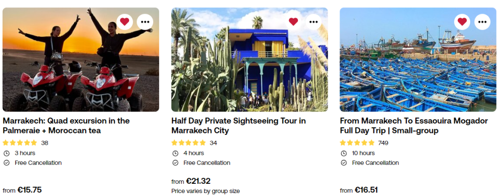 Gueliz represents the modern face of Marrakesh, featuring wide boulevards, contemporary shops, and a lively atmosphere. Travelers staying in Gueliz can explore upscale boutiques, art galleries, and trendy cafes. The area is known for its cosmopolitan vibe, with a mix of international and Moroccan influences. Gueliz offers a contrast to the historic Medina, providing a more modern and Westernized experience for those seeking a dynamic urban setting during their stay in Marrakesh.